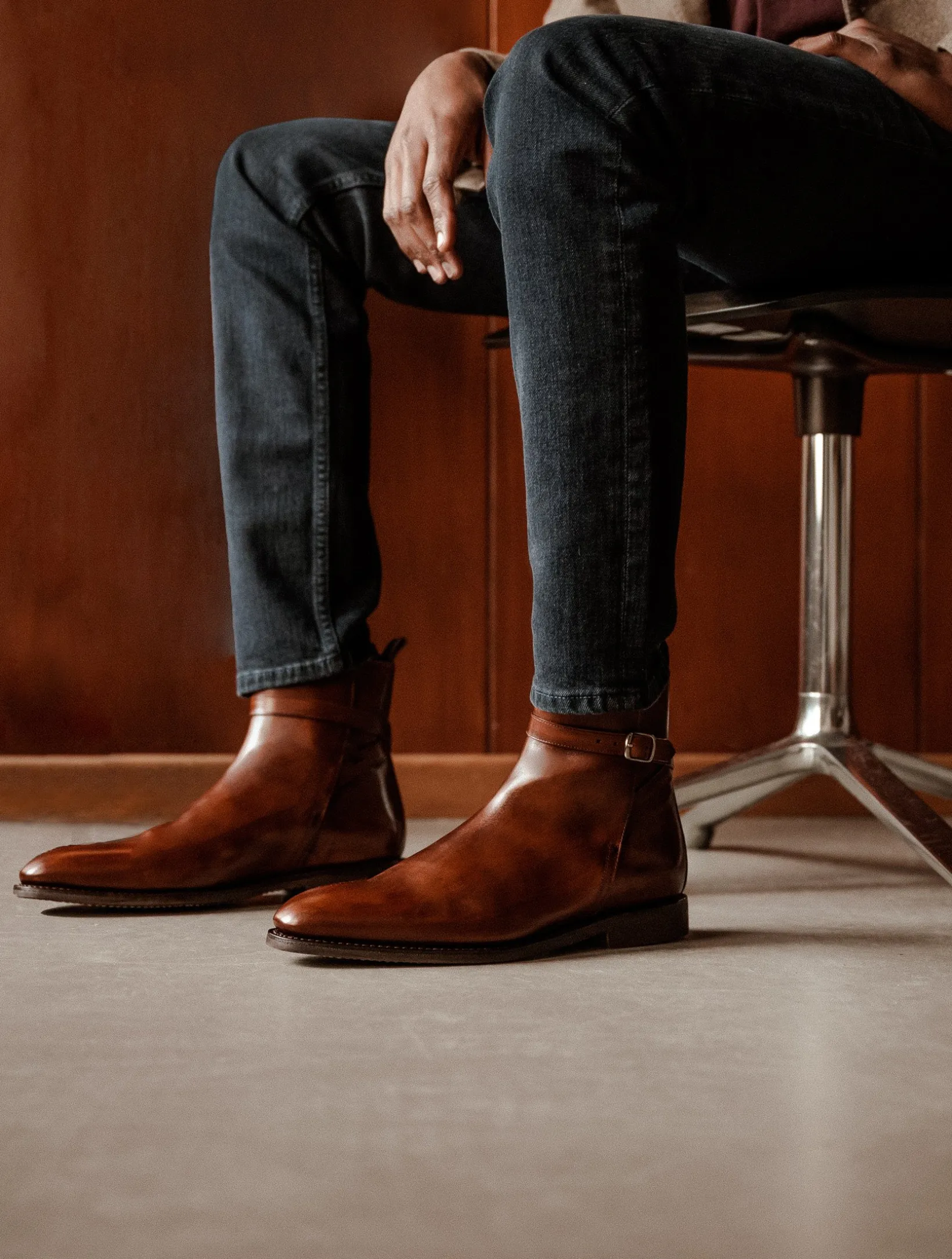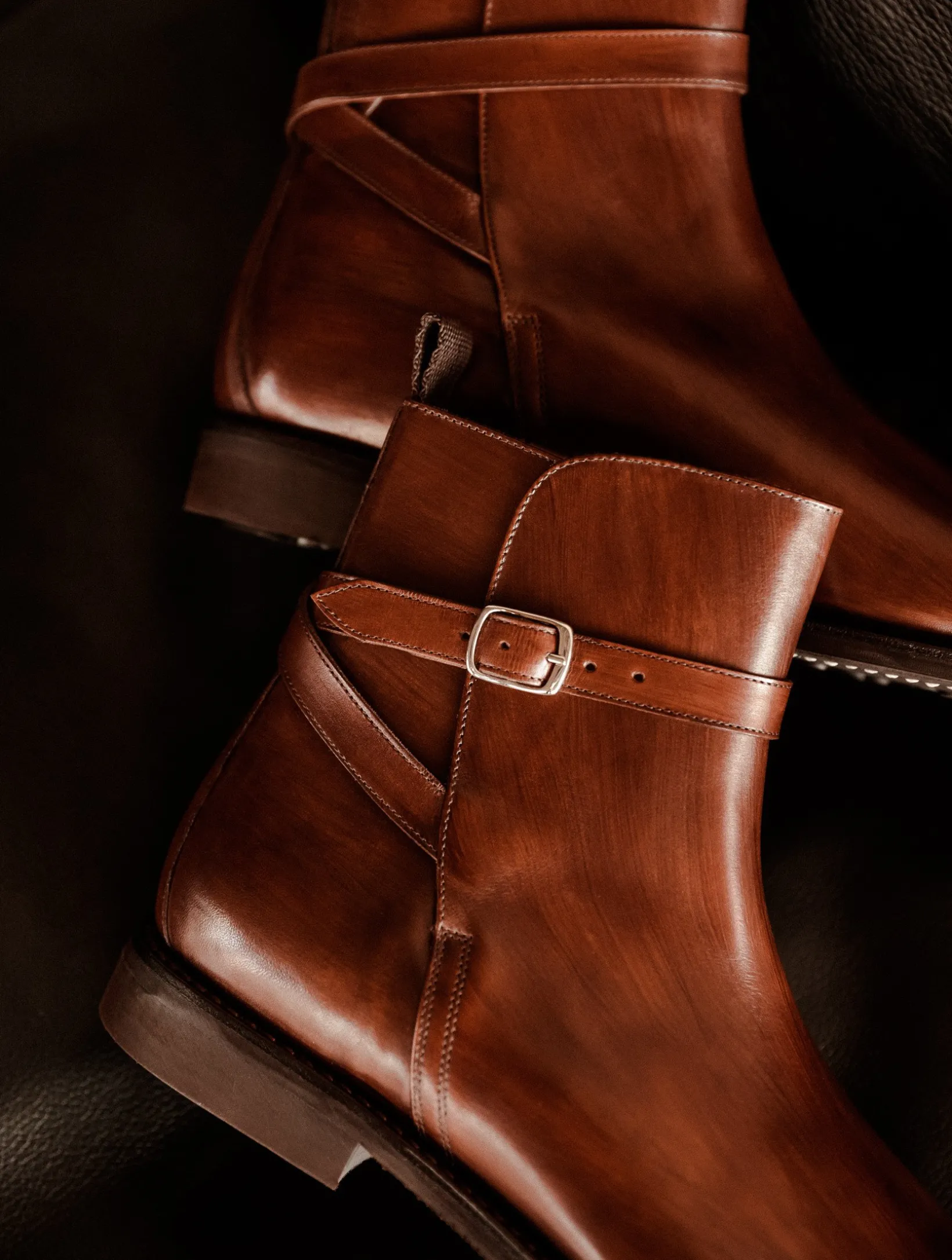 – The calf leather used to make this boot comes from one of Italy’s most famous tanneries, supplying the great luxury houses for decades. Received in its raw state, its deep nuances are obtained by the meticulous work of our master bootmaker, specialized in the know-how of patina. Over a period of almost thirty minutes, a skilful blend of our different shades is handcrafted to obtain the subtle variations in tone that make each pair unique.