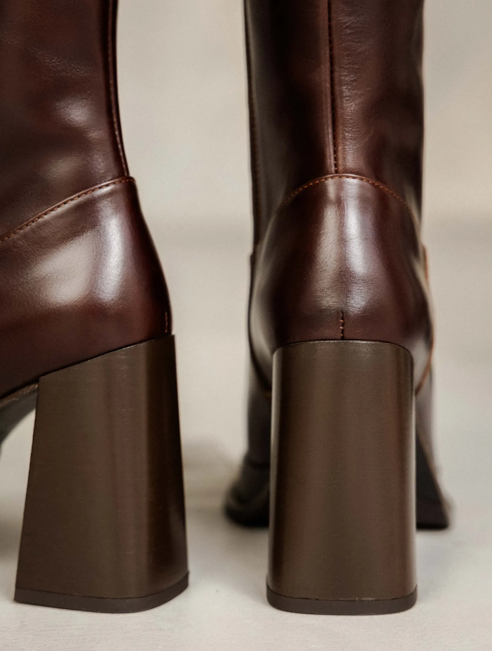– Wood-effect leather-covered heel and platform