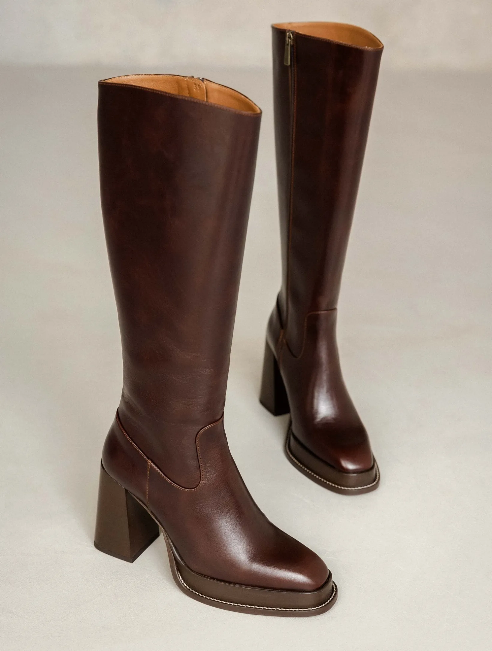 – High-heeled platform knee high boots