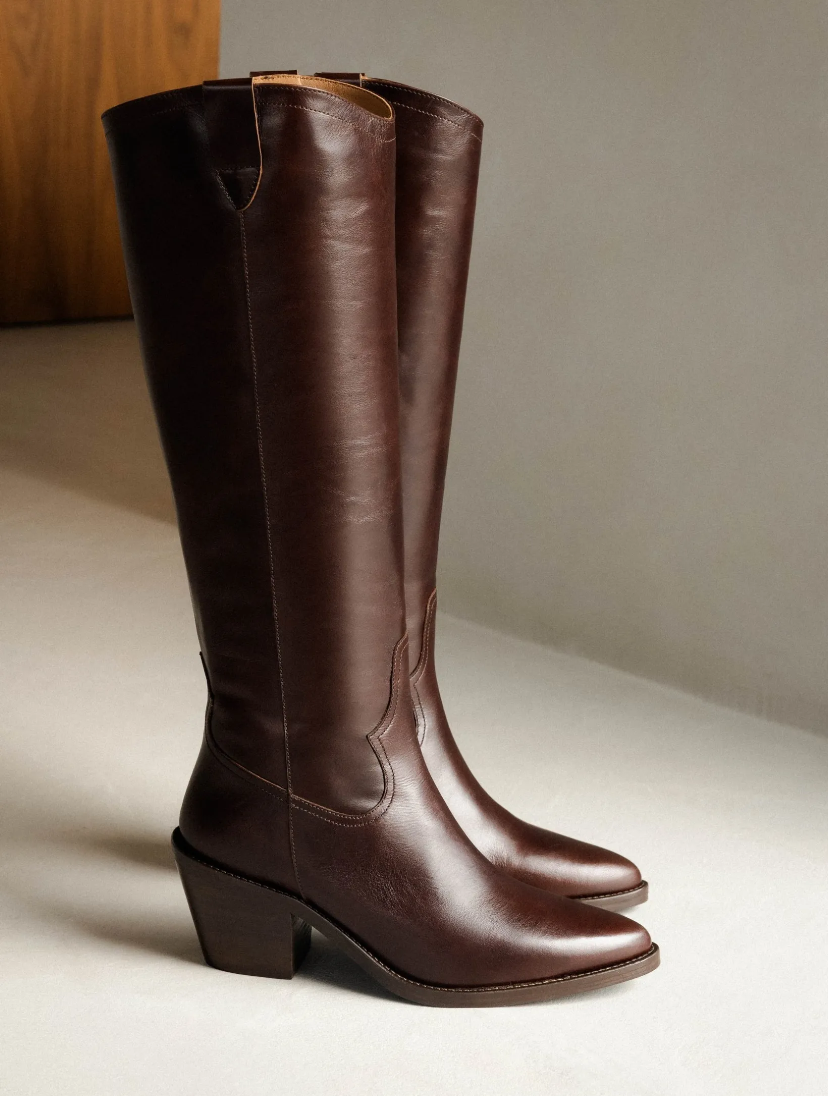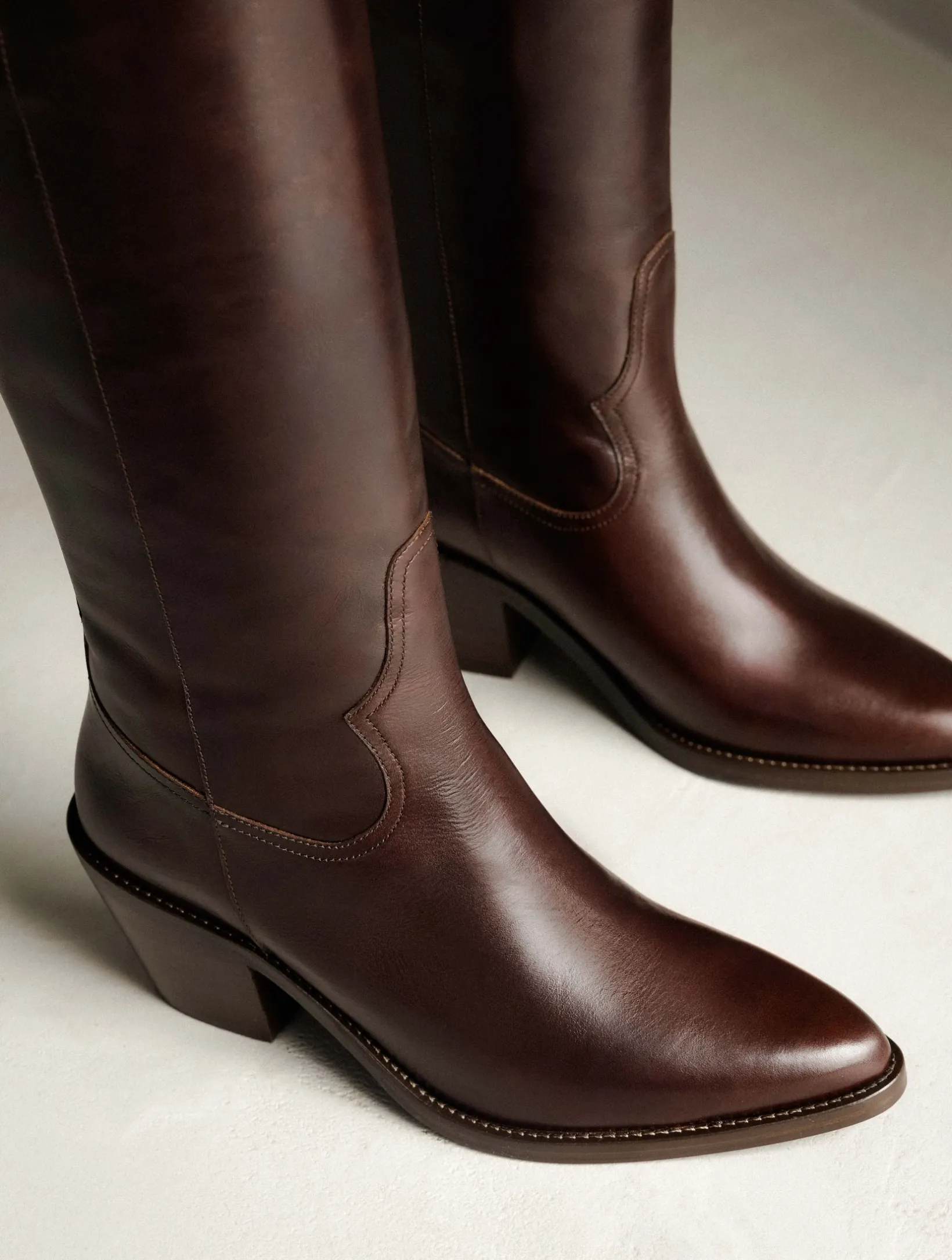 – Santiag-style knee high boots