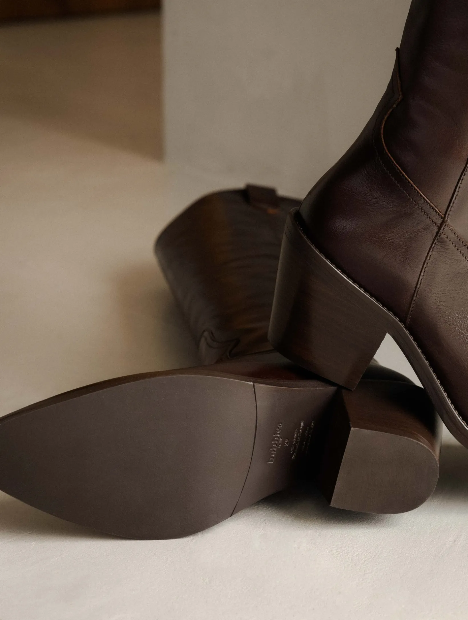 – Wood-effect leather-covered heel