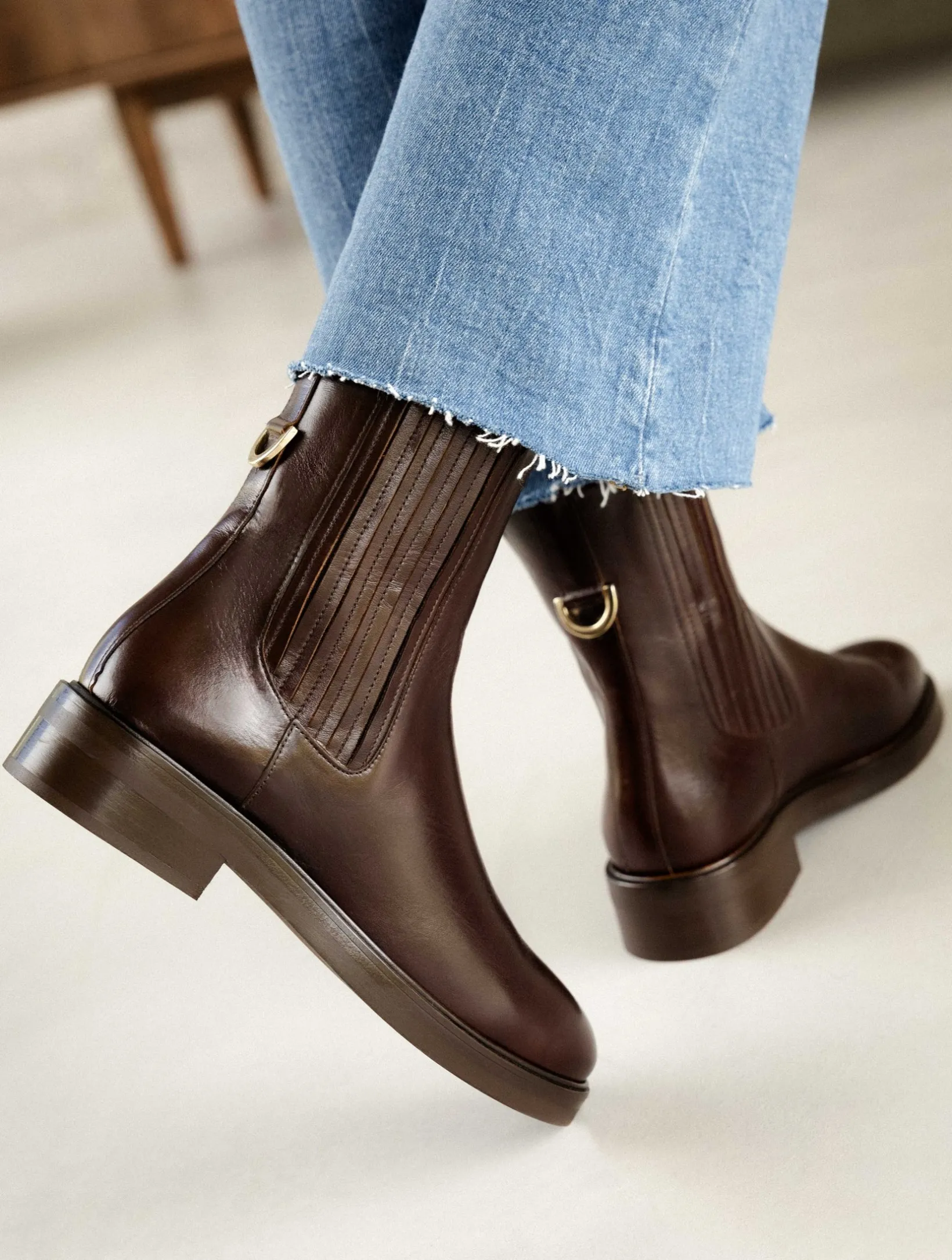 – Leather and rubber soles