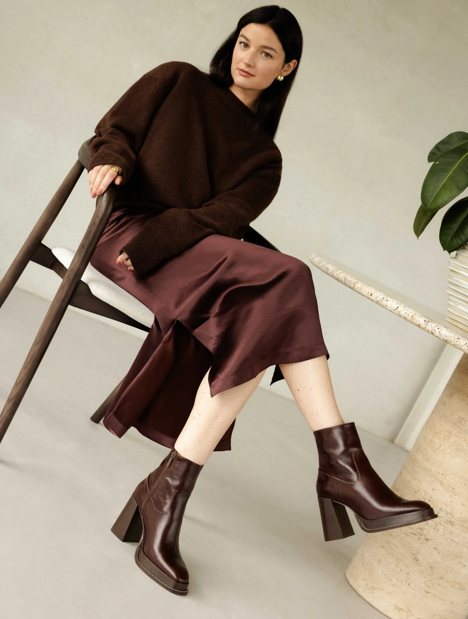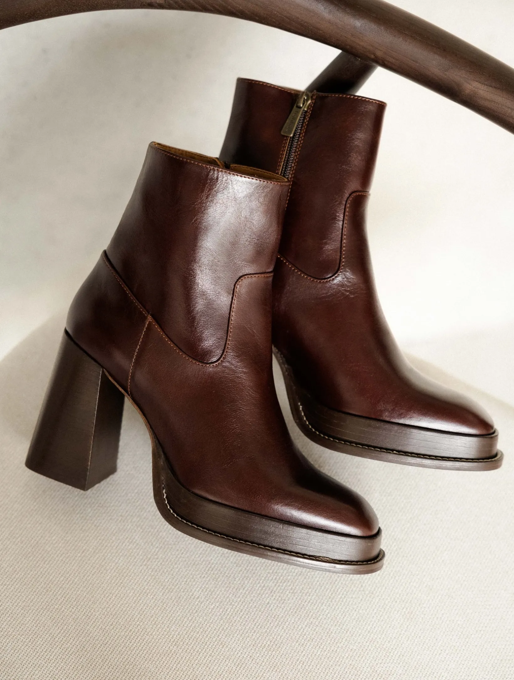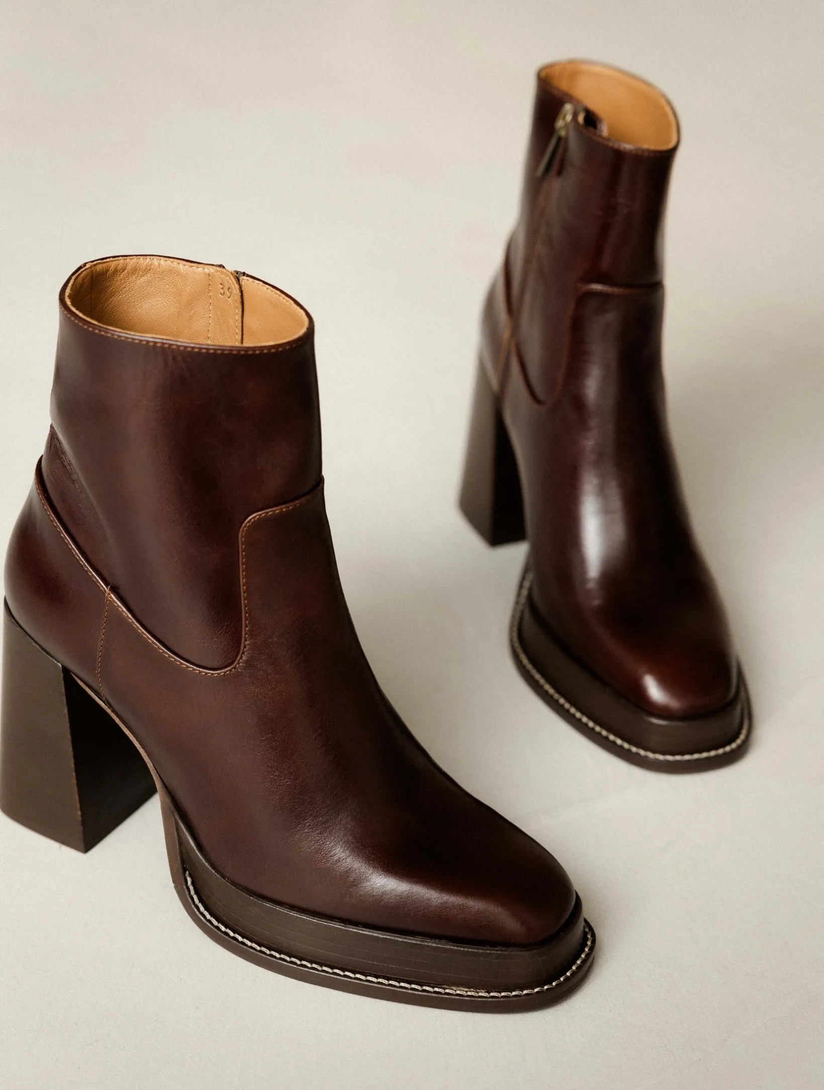 – Wood-effect leather-covered heel and platform