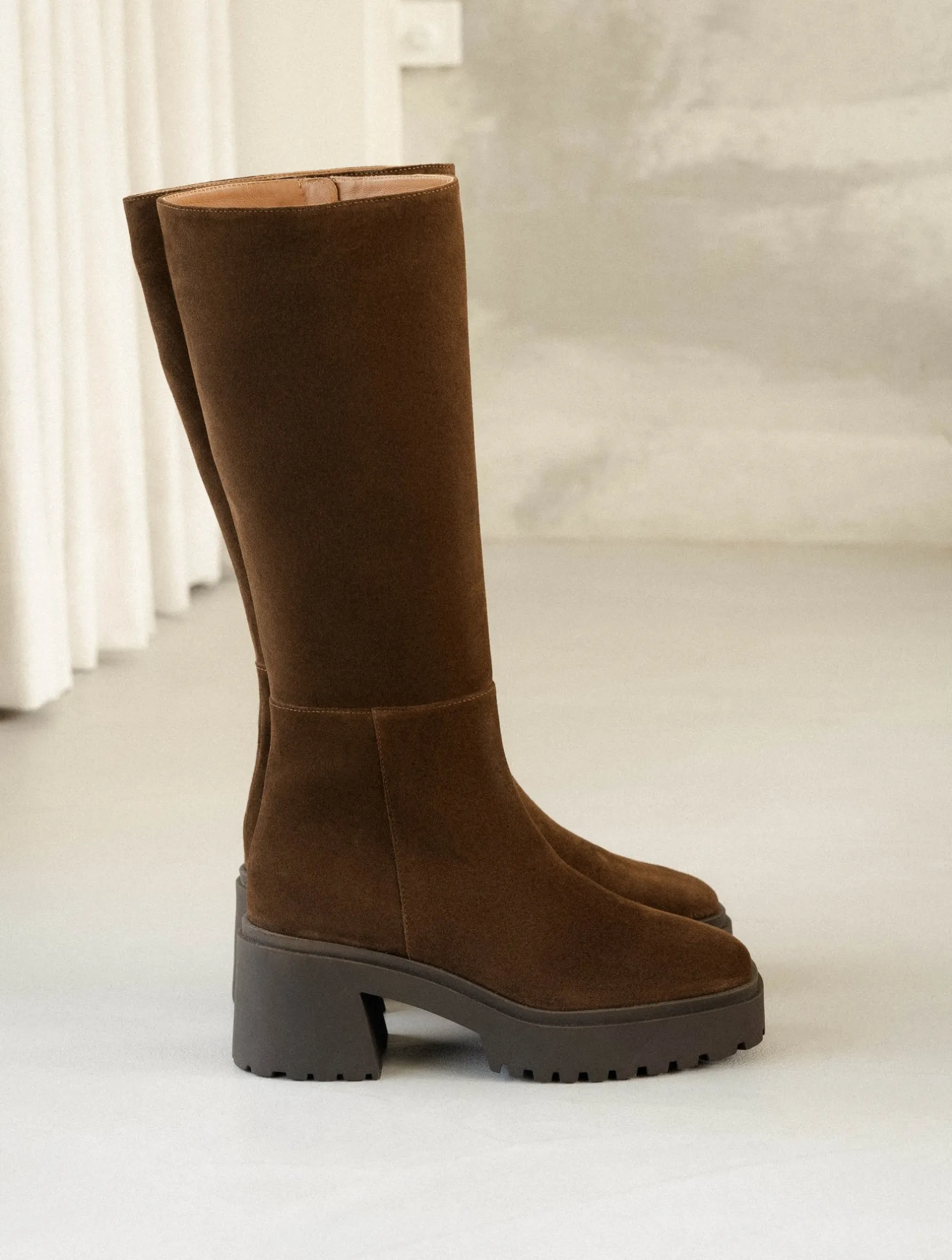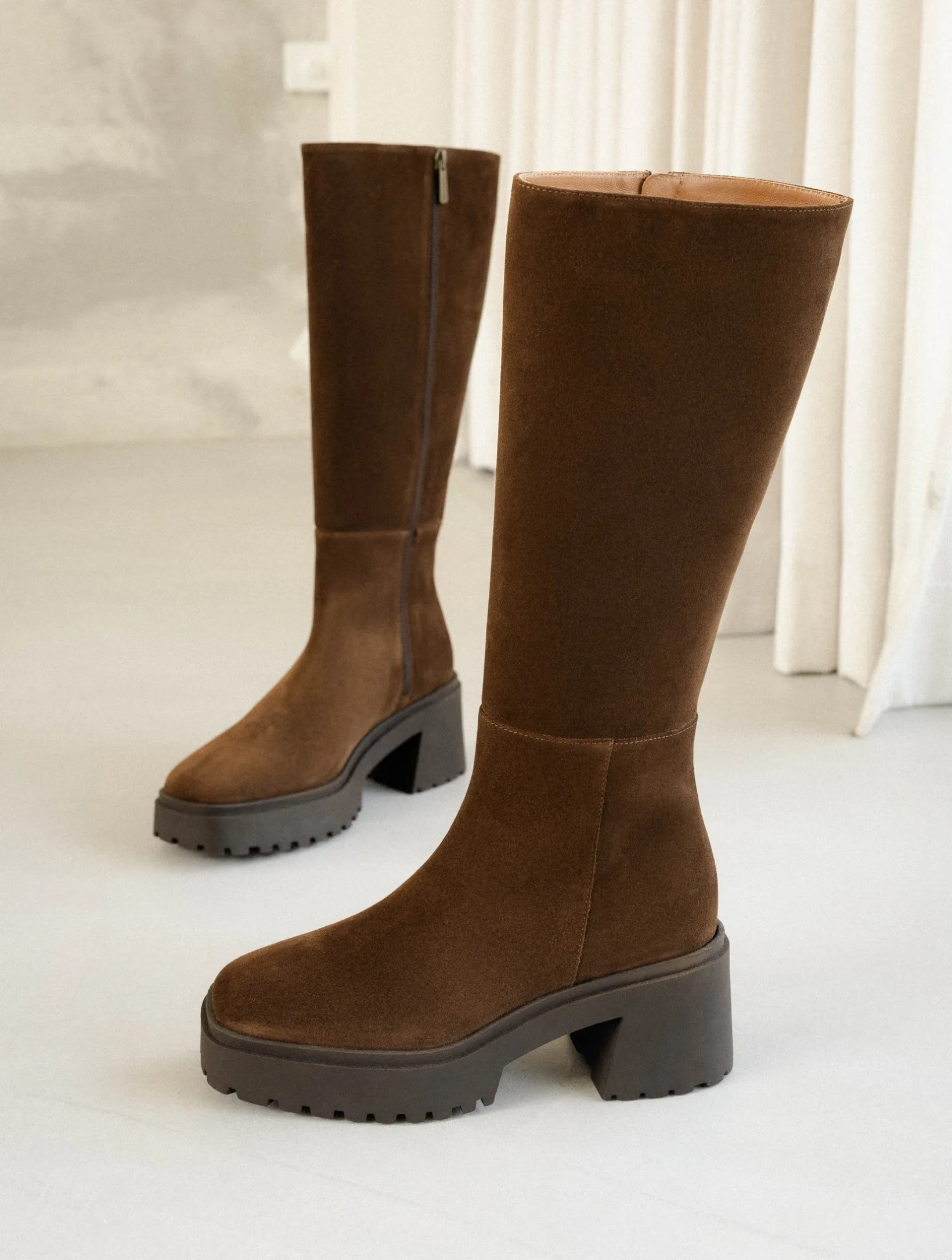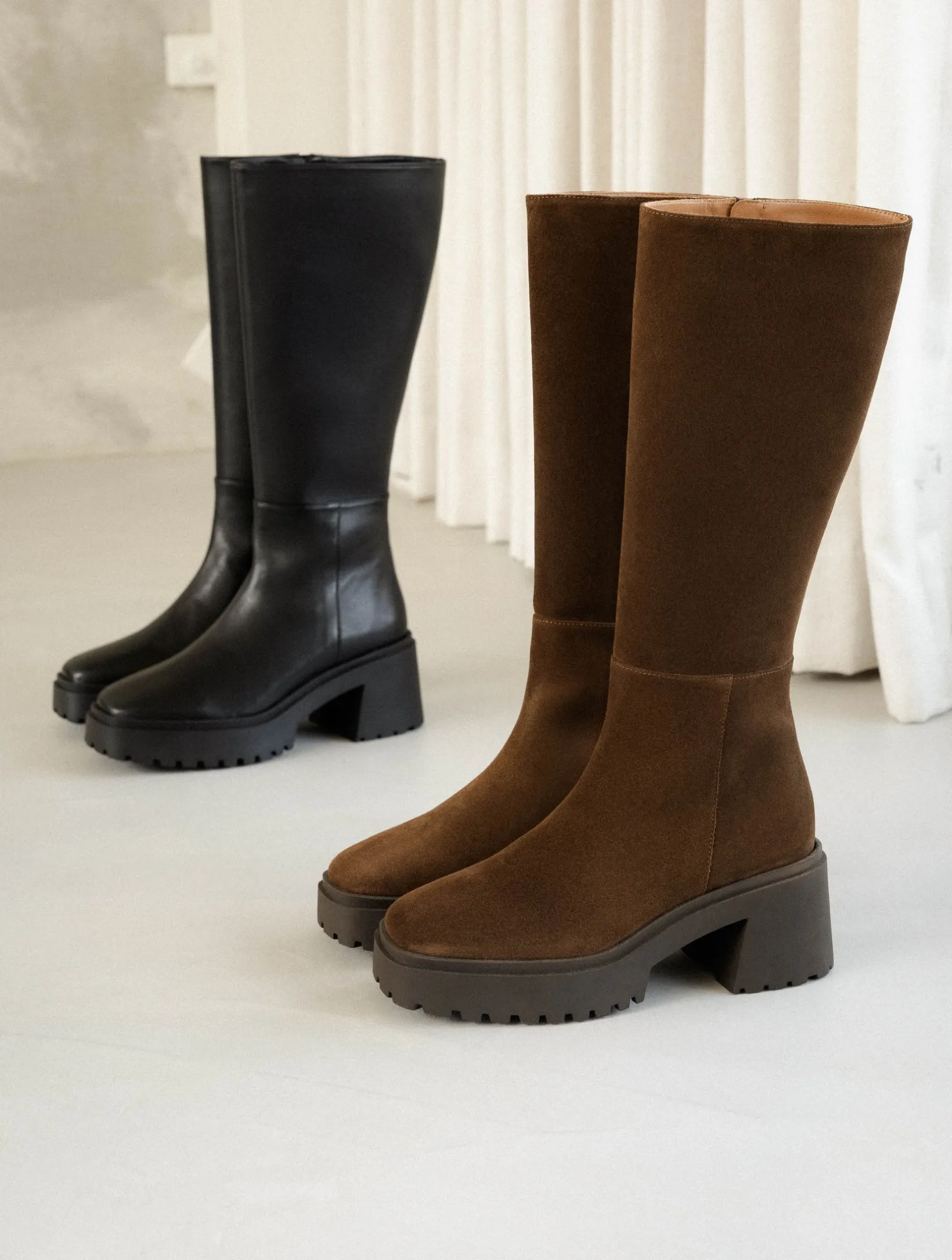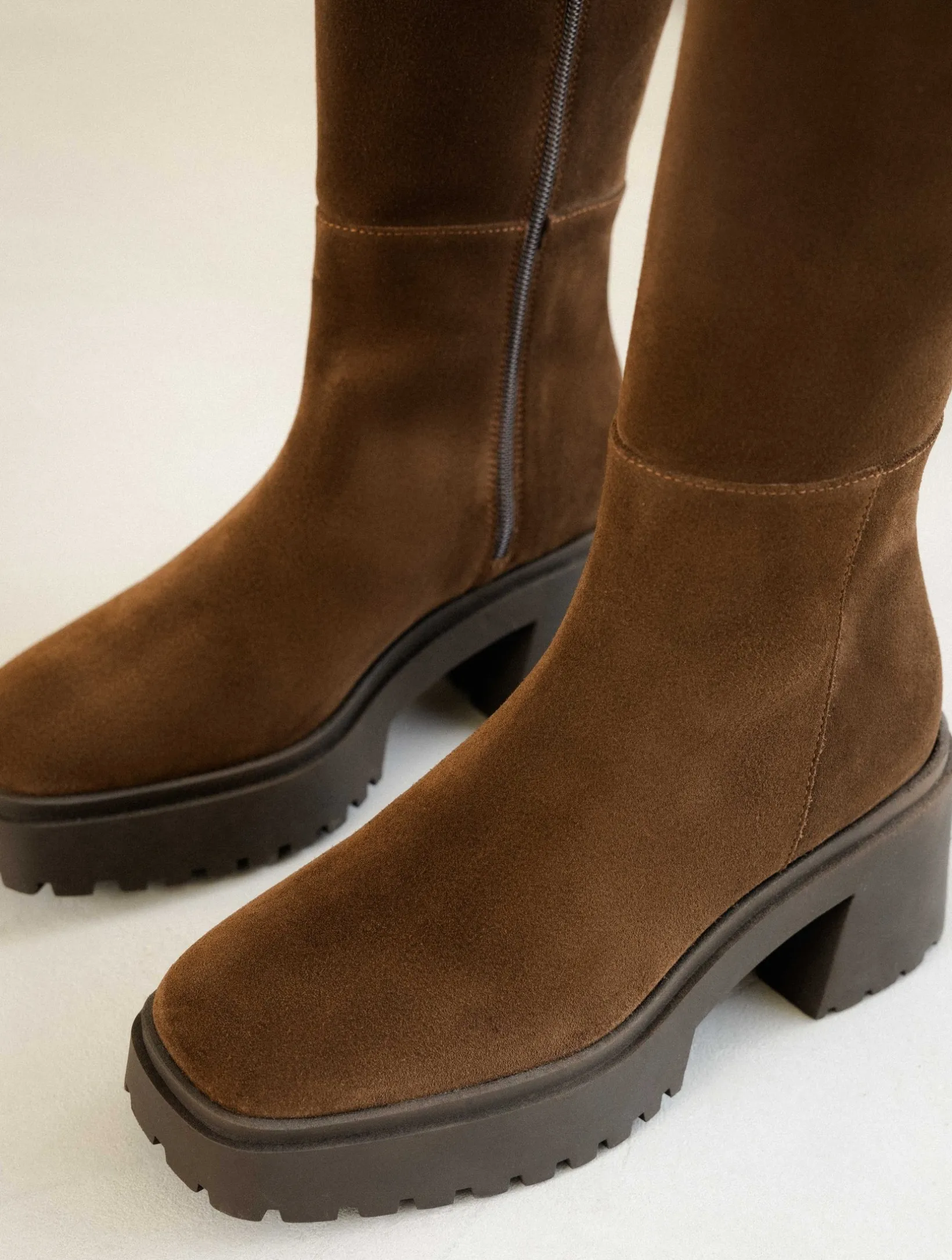 – Knee high boots with chunky sole