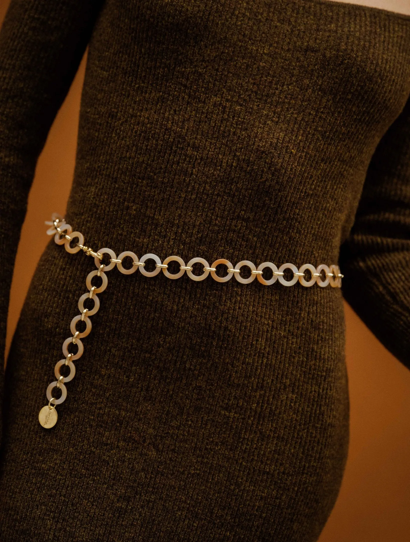 We recommend that you let the end of the chain hang down about 20 cm (as shown in the photos). For example, if your waist measurement is 80 cm, we recommend a size 2 (100 cm).