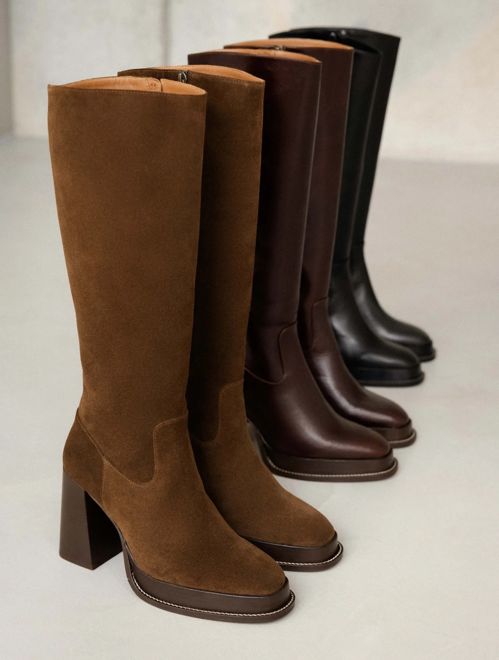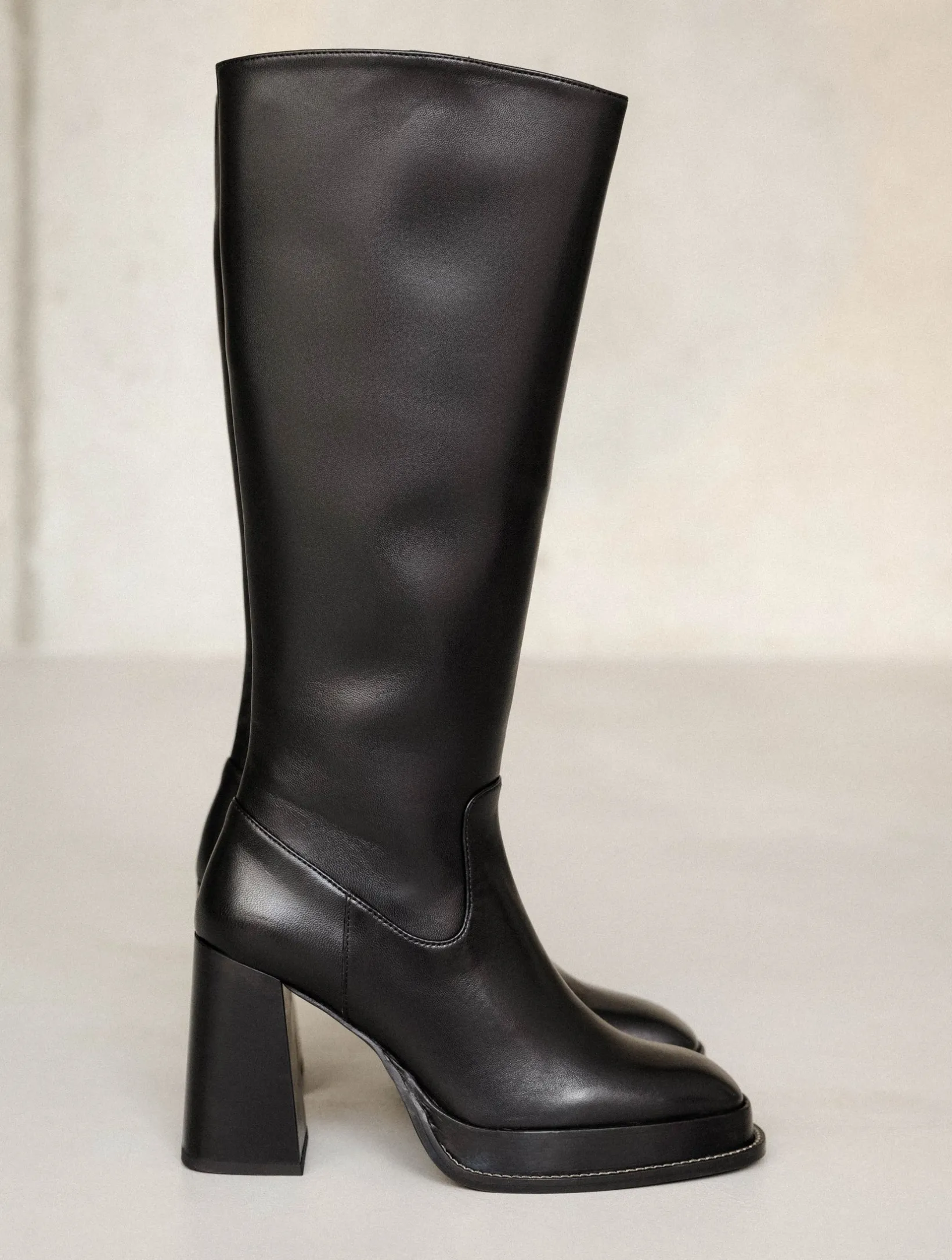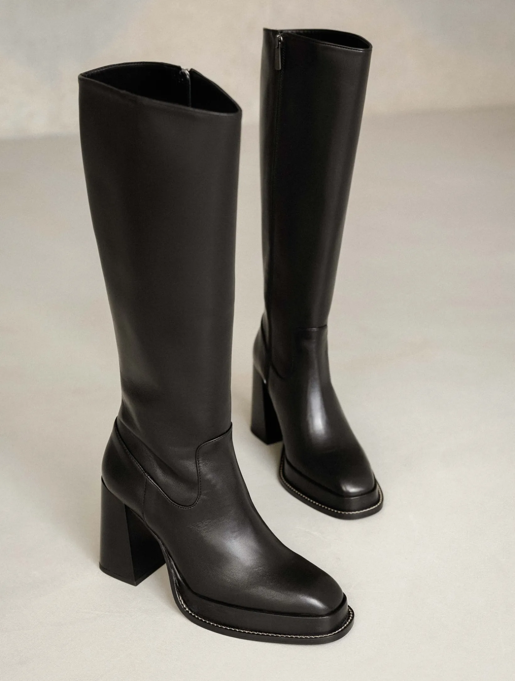 – High-heeled platform knee high boots
