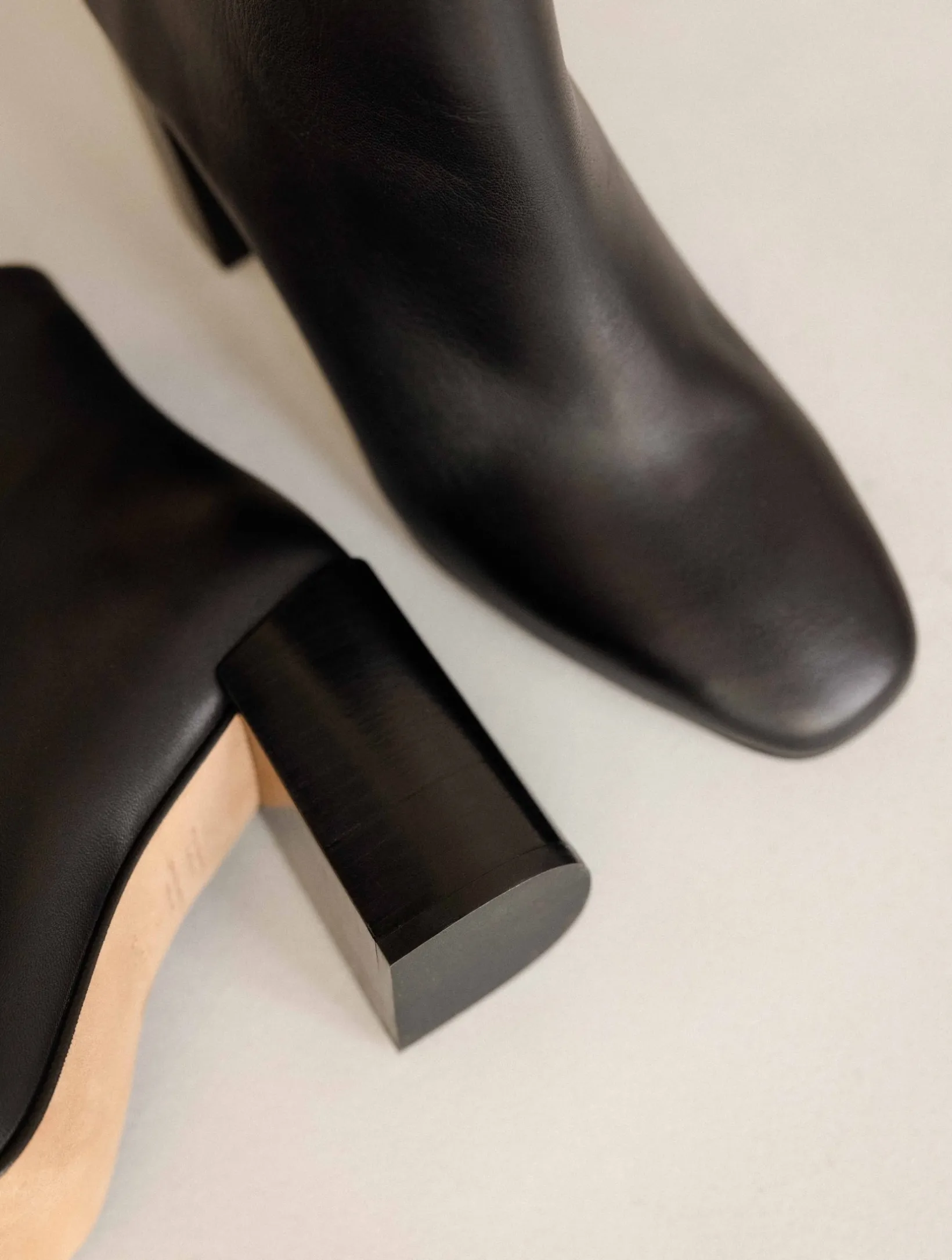 – Wood-effect leather-covered heel